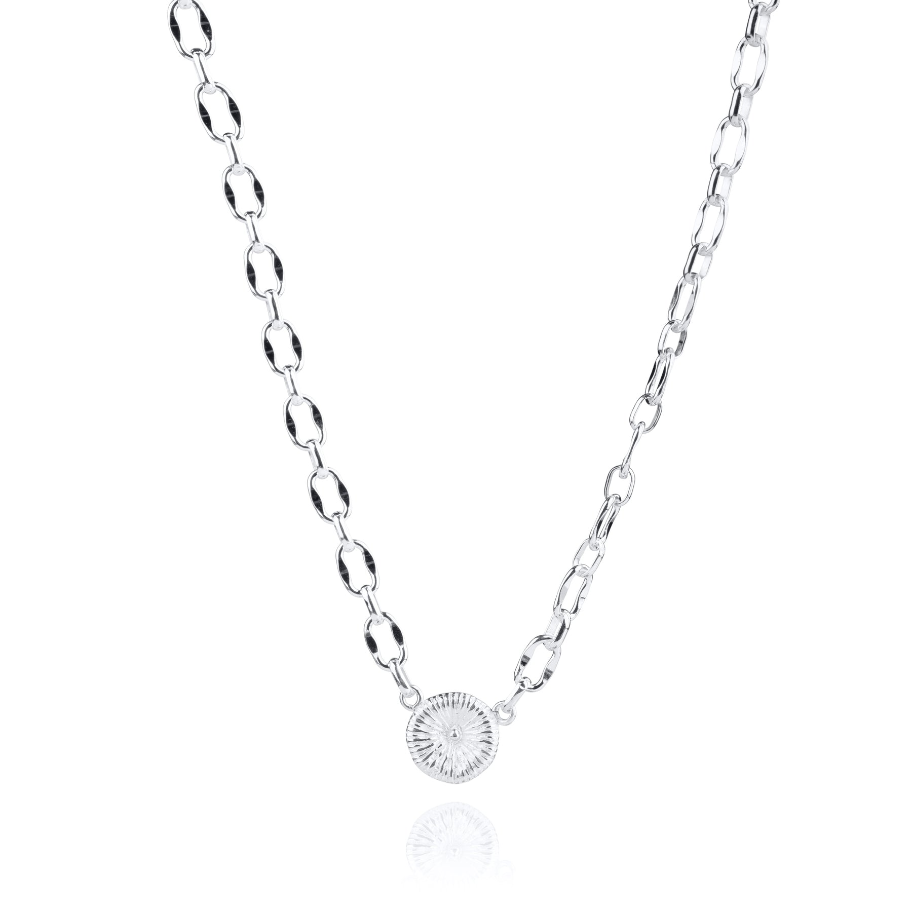 Halsbandet är en kombination av polerat och oxiderat silver. Eftersom vi bryr oss om miljön, använder vi endast återvunnen ädelmetall i våra tidlösa smycken - däribland ren silverlegering helt fri från nickel.