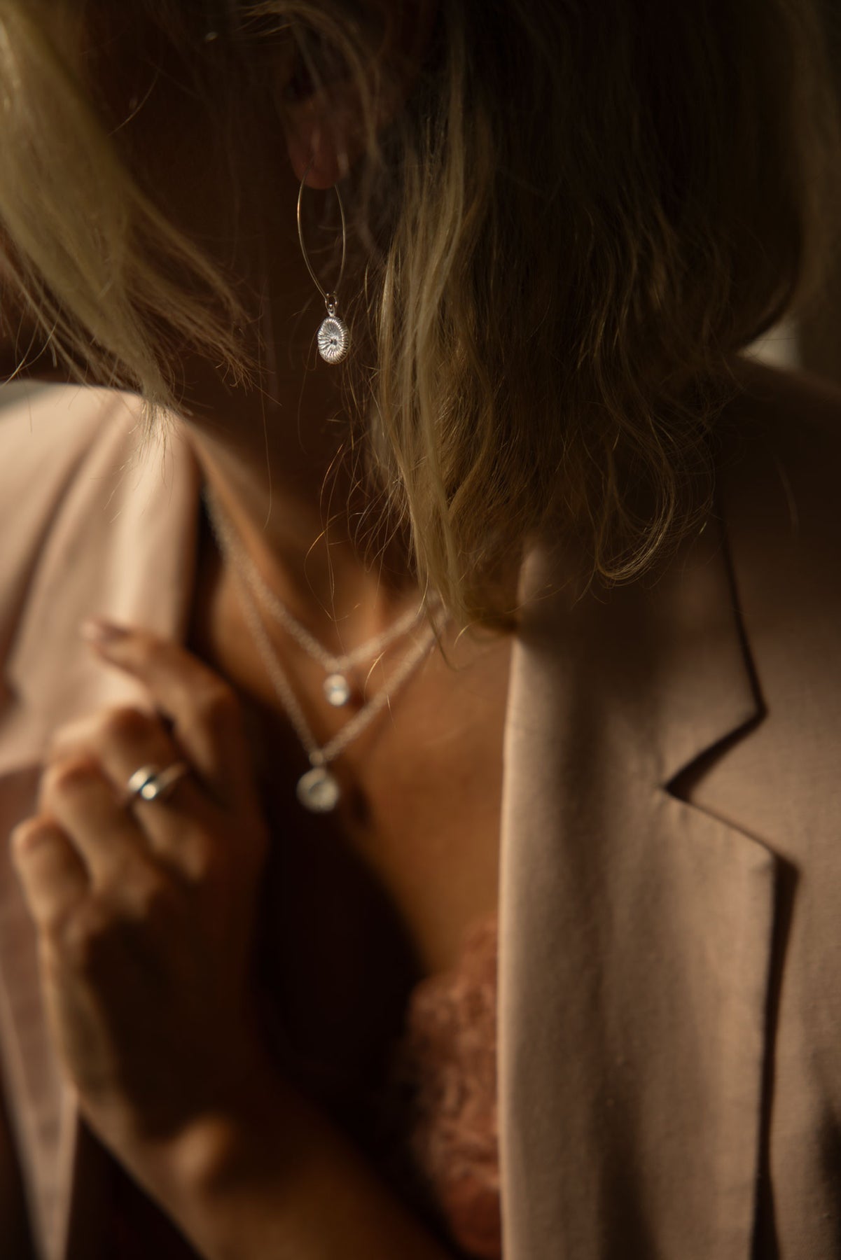 Örhängen på lång krok som finns i silver och oxiderad silver