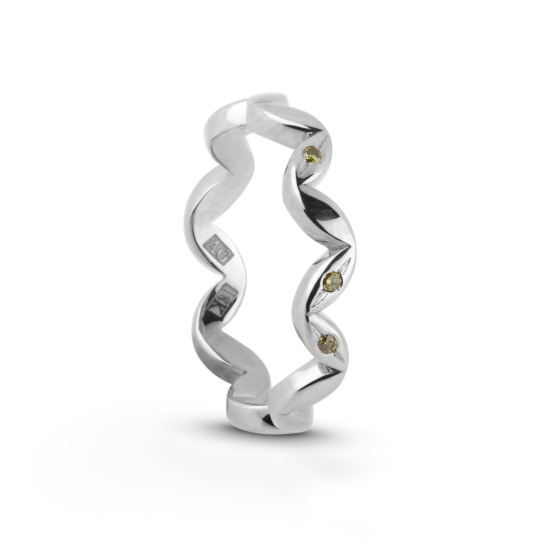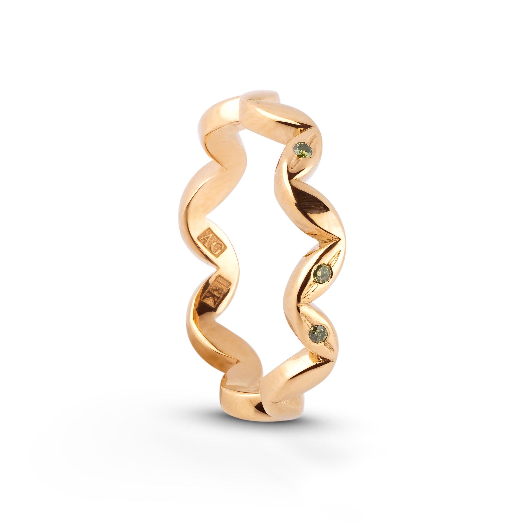 Berså är inspirerad av naturens rörelse, med en bladformad skena som slingrar sig mjukt runt fingret. En ring med karaktär – där formen ger ett levande uttryck och fångar både stillhet och styrka.