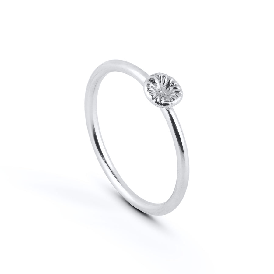 Ringen liten silver är både vackert och tidlöst. Denna fossil var från början en korall för 430-miljoner år sedan när Gotland var beläget vid ekvatorn. Du hittar bara denna fossil på Gotland längs stenkusten.