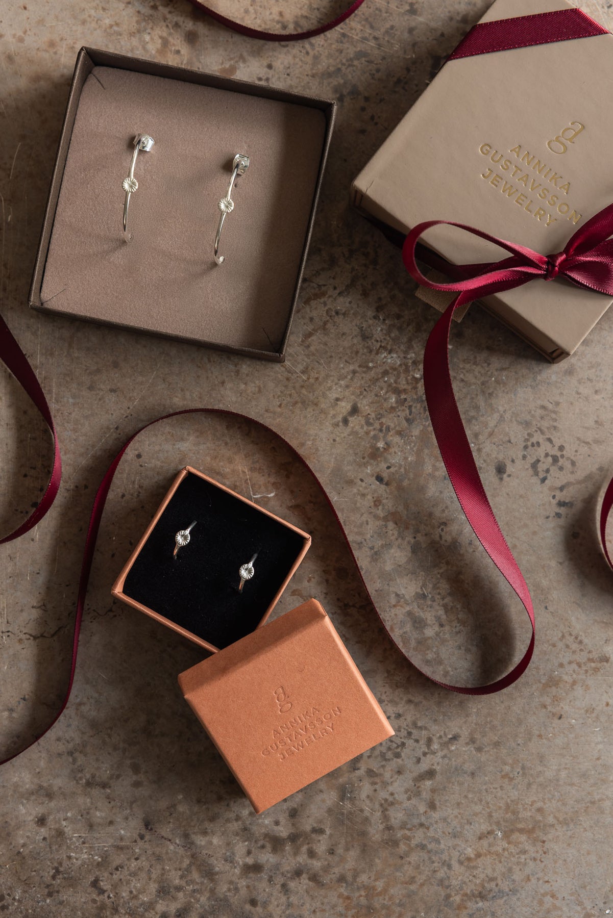 Två älskade klassiker i ett – våra Knappkorall-creoler i både liten och stor modell. Perfekta att bära tillsammans eller växla mellan för olika tillfällen. En tidlös julklapp fylld av glans och gotländsk elegans.